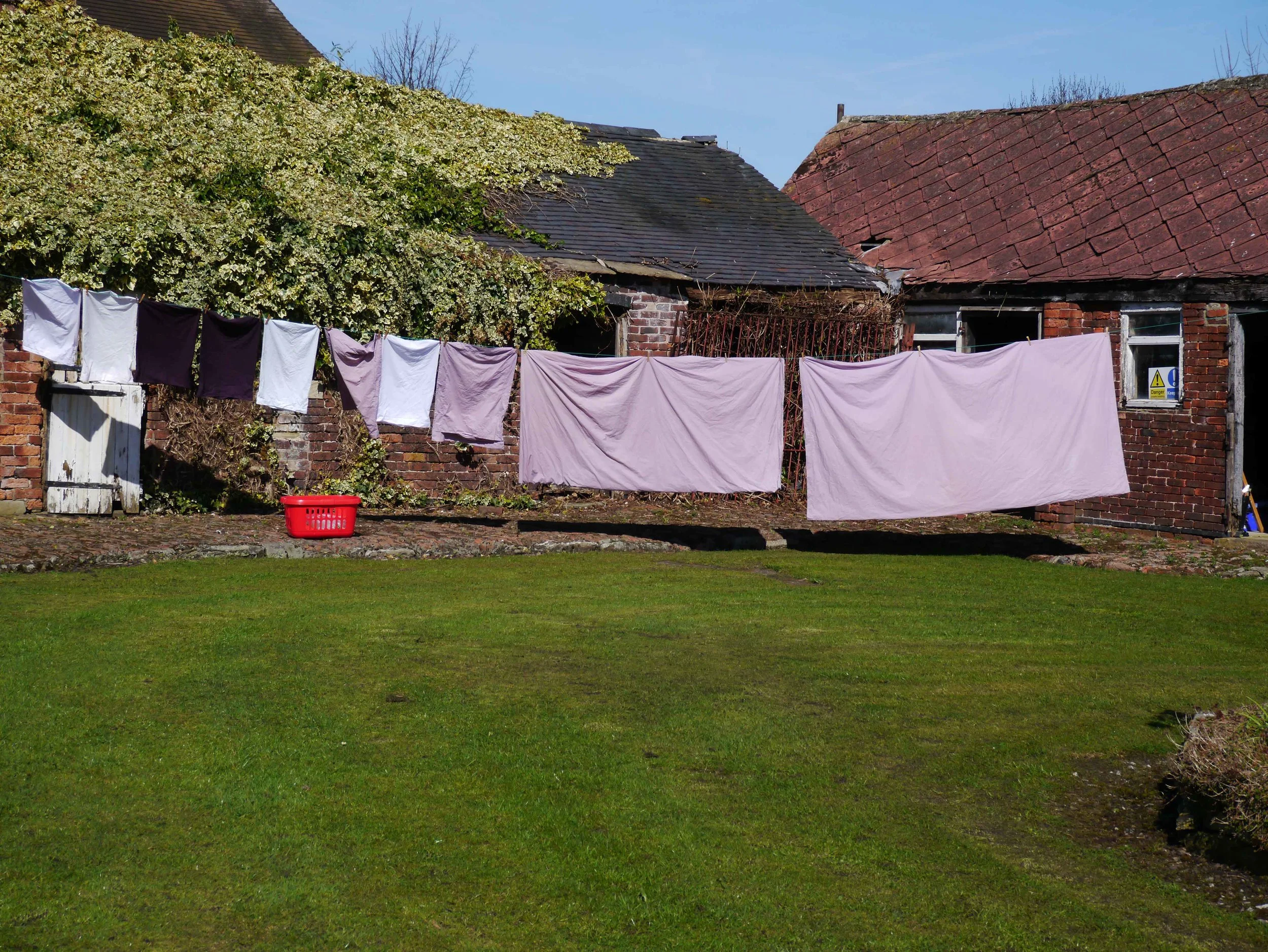 Just a little footnote. The weather has been glorious this week. I've been gardening and wallpaper scraping (helping out in a child's home) and generally busy, busy, but the best thing about the lovely weather has been the chance to dry some washing in the sun. Strange, I know. In our pokey little flat there is nowhere to hang washing outside so on a gardening day at the barns, I took the washing and HUNG it out in the sun. Whoopdedoo, fresh smelling bedding. It's the little pleasures in life......