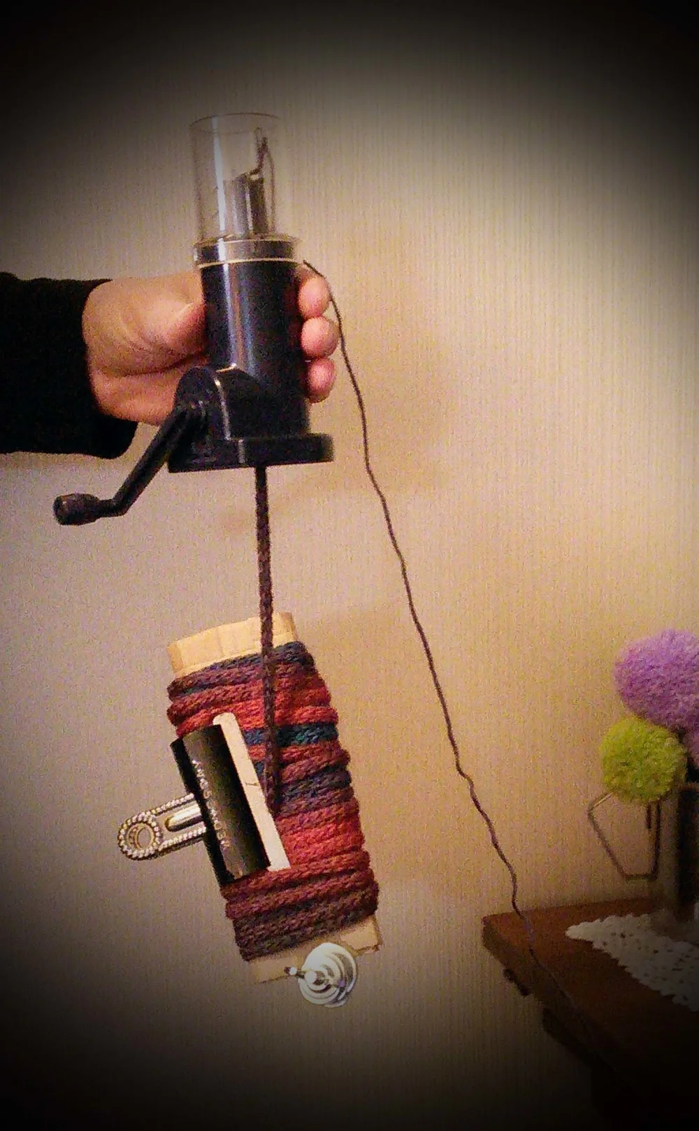 And finally, something finished and it's for me. It started life with my newest knitting gadget to make knitted cord (see here). I wanted a pretty vase and although we have many vases, they are all in storage, so armed with an empty (and clean) olive jar, I decided it would look really nice with the cord wrapped and stitched around it. Well, it does look lovely, but bloomin' heck, it took ages. I'm definitely hanging onto this one - kids, are you listening?