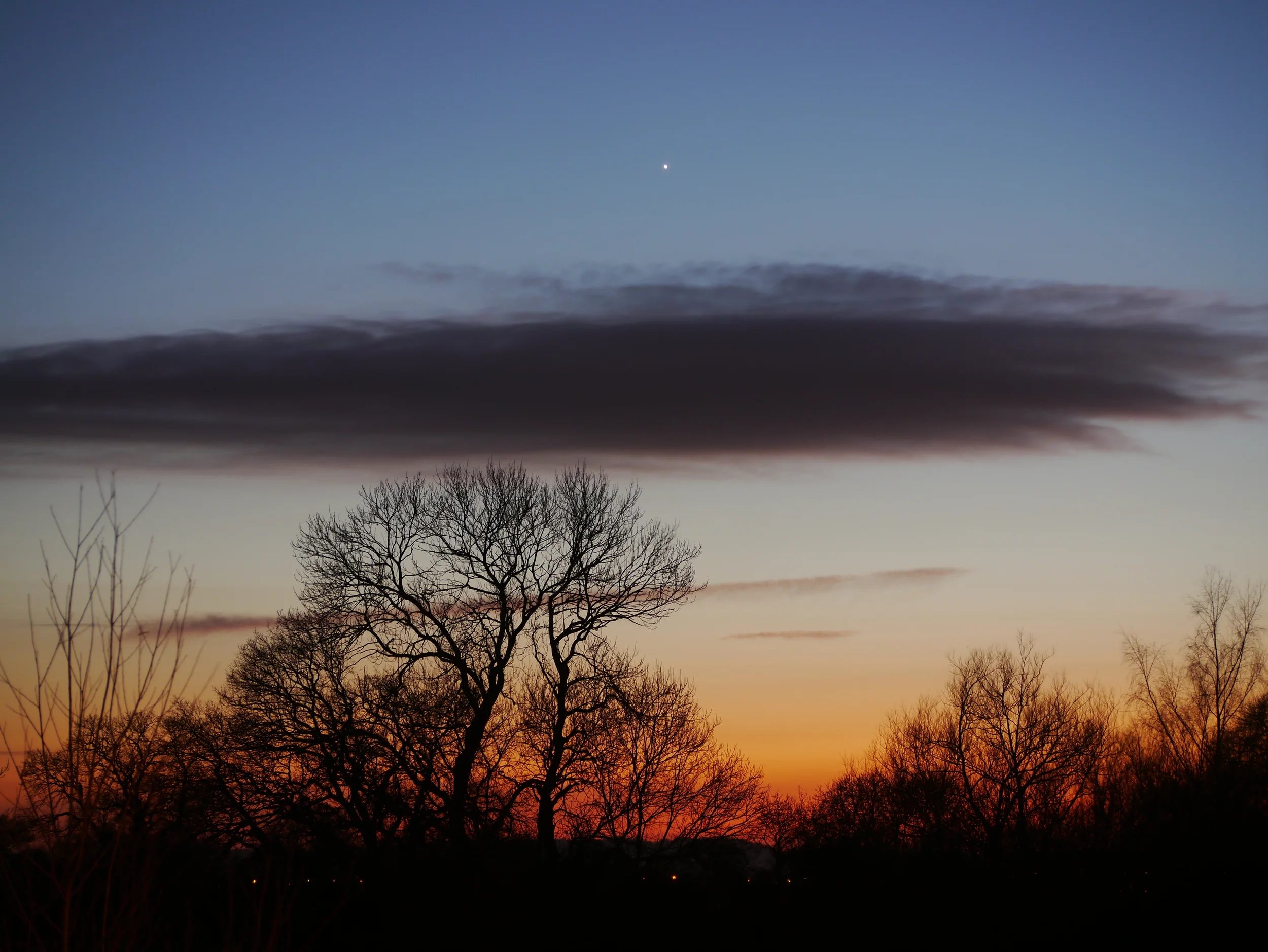 One of the unexpected pleasures of our little rented abode is that we have the most marvelous view. I've just been watching the sunset as I type away and noticed a bright light in the sky which I initially thought was an aircraft. But, it didn't move at all. Aha, I thought, as my mind drifted on, I bet it's a UFO. However, back to reality, it's not a spaceship, idiot. I must watch (and read) too much sci-fi. A quick google and it was revealed to be planet Venus. I watched it a bit more and then thought that it would be nice to take a photo, but by the time that I'd assembled the tripod and set up the camera a great black cloud was looming and it was just too dark to get it. I've left the tripod up in the hope that I can capture it tomorrow. That's guaranteed to make it rain!